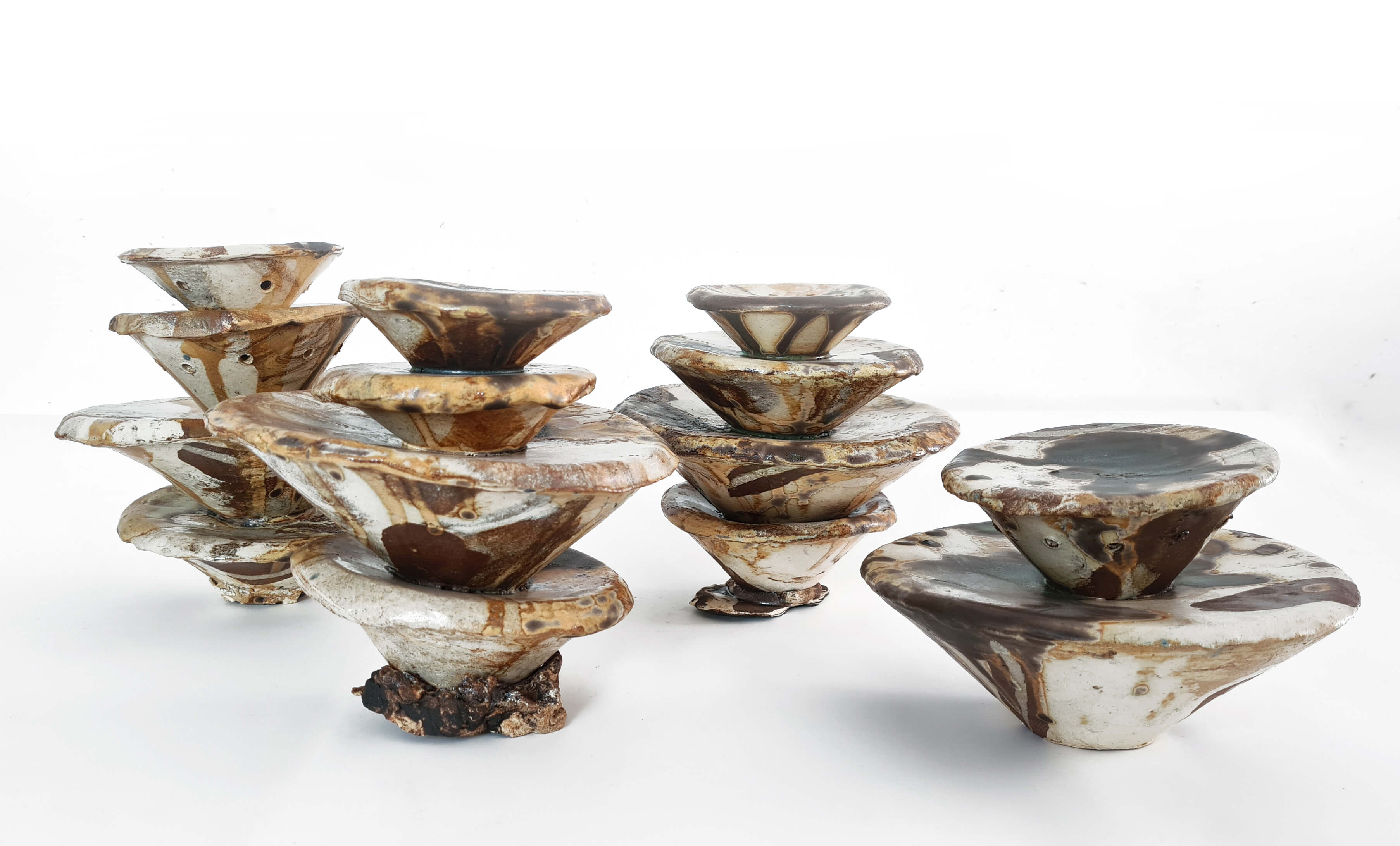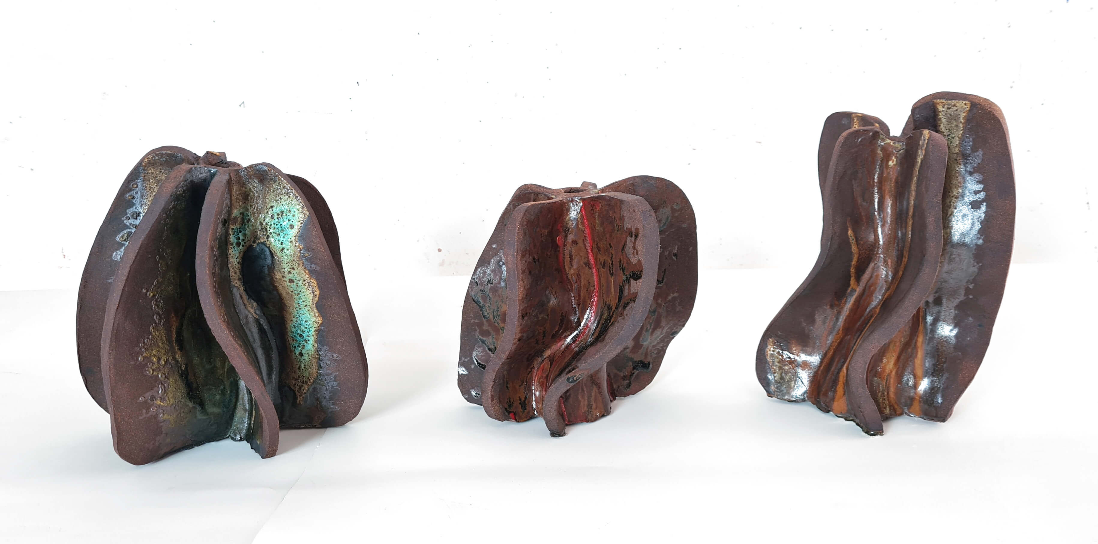 « Algae n°1, n°2 et n°3 » céramique émaillée, Dimensions : 28x23x34 cm, 23x25x30 cm et 23x25x37 cm, janvier 2024.